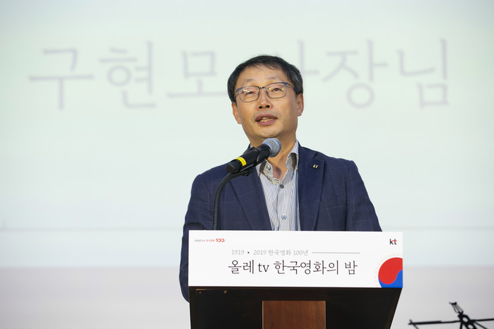 KT커스터머&미디어부문장 구현모 사장은 “IPTV와 한국영화는 떼려야 뗄 수 없는 관계다.한국영화 발전이 IPTV의 성장에 큰 부분 기여했고, IPTV 역시 건전한 영화 콘텐츠생태계 조성에 일조했다고 본다’며, “KT는 올레 tv를 통해 고객들에게 더 다양한 한국영화를 소개하고 한국영화가 나아갈 새로운100년도 함께 응원하겠다”고 말했다.