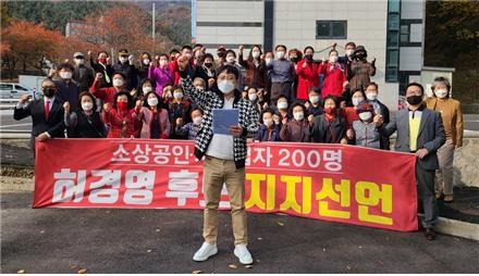 김관석(도봉구, 레스토랑 경영) 모임 대표와 정대석(시흥시, 제조업) 및 박희열(강동구, 용달업) 등, 40여 명은 200여 명의 중소상공인, 자영업자 들을 대표하여 지지선언을 통해 “여⋅야 기존 정치권은 국민의 어려움은 아랑곳하지 않고 원칙이 무너지고 정쟁을 일삼고 있어, 정권과 정치교체로 국민이 행복한 대한민국을 이뤄낼 후보는 허경영”이라며 지지 이유를 밝혔다.