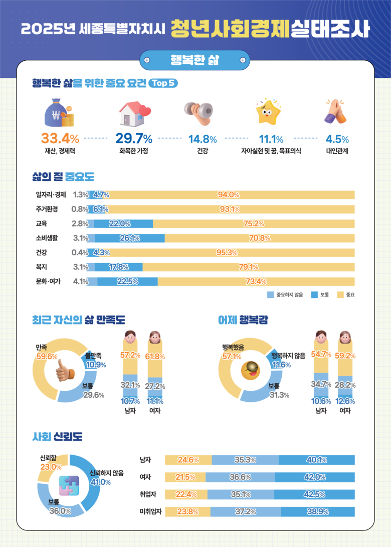 시는 31일 3년 주기 국가승인통계인 ‘2025년 청년사회경제실태조사’ 12개 부문 66개 문항 결과를 발표했다.
