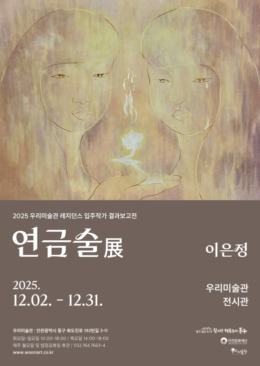 이번 <연금술>展은 우리미술관 레지던시 입주 작가 결과보고 전시회로, 이은정 작가가 만석동 괭이부리마을에서 주민들과의 커뮤니티 아트 결과를 전시한다. 뿐만 아니라, 작가가 지역에서 받은 영감을 통해 작품을 완성하였고 이를 전시한다. 작가는 보편적인 삶과 예술이 만나는 지점을 화두로 현재 고령 여성의 토착지식과 암묵지에 대한 탐구에 기반 하여 다양한 방식으로 예술 활동을 하고 있다. 작가는 다음의 글을 통해 전시의 기획의도를 밝힌다. “괭이부리 마을 사람들이 그리는 그림에는 그 창조의 조각들이 새겨져있다. 그림을 그린 그만의 원초적인 선과 붓질로 그만의 생의 조각이 떨어져 나왔다... 그림으로 떨어져 나온 삶의 조각으로부터 어쩌면 놀랍게도 다시 내 삶의 창조가 이루어질 수 있지는 않을까? 지금 바로 여기에서 나의 지나온 삶을 꽃으로, 산으로, 어여쁜 새로 바라보며 그곳을 지나온 나를 뜨겁게 안아주는 것이다. 우리는 모두 타고난 삶의 연금술사라는 사실을 이제는 기억하며... .”