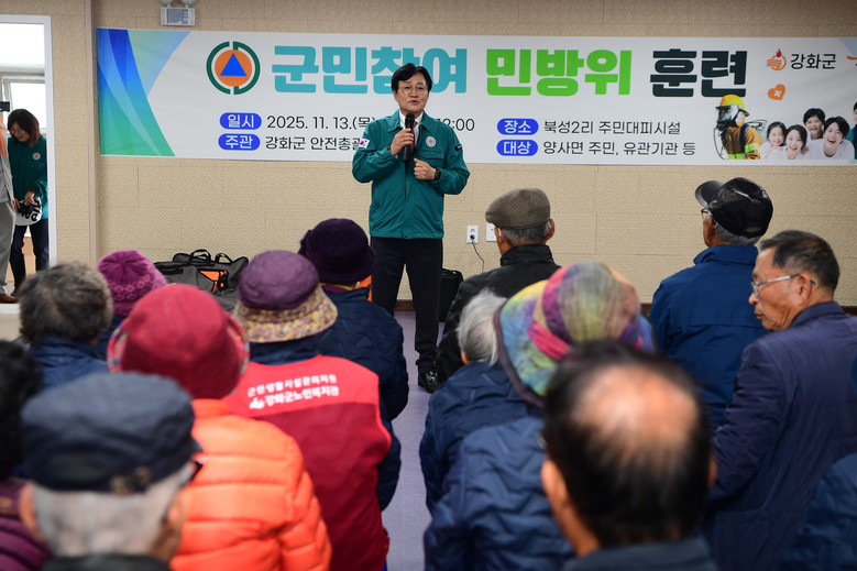 [강화군 세계타임즈=심하린 기자] 강화군(군수 박용철)이 지난 13일, 북성2리 주민 대피 시설 일대에서 ‘2025년도 군민 참여 재난 대비 민방위 통합 훈련’을 개최했다.