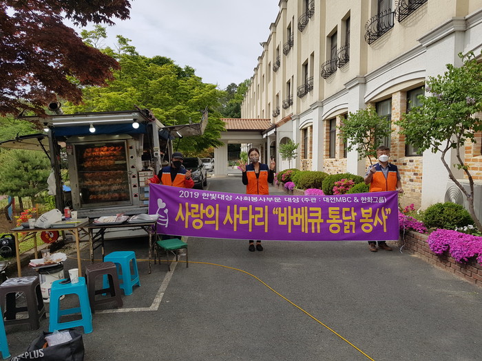 [대전=세계타임즈 이채봉 기자] 코로나19 상황에서도 비대면 봉사로 다양한 나눔을 실천하고 있는 SNS 9천명 대전시 봉사단체 사랑의 사다리 밴드(리더 이정제)는 지난24일 오후3시, 서구 정림동에 위치한 후생학원 아동보육시설에서 바비큐 통닭 50마리 봉사로 우리 사회의 따뜻한 사랑을 전달 하였다.