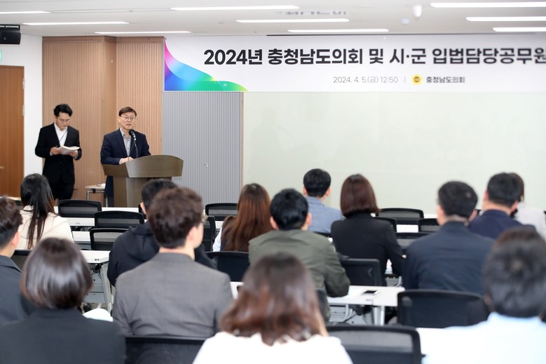 [충남 세계타임즈=백택기 기자] 충남도의회(의장 조길연)는 5일 의회 회의실에서 충남도의회 및 시·군의회 입법담당공무원 약 80여 명을 대상으로 ‘2024년 입법담당공무원 연찬회’를 개최했다.