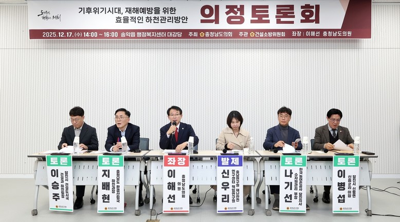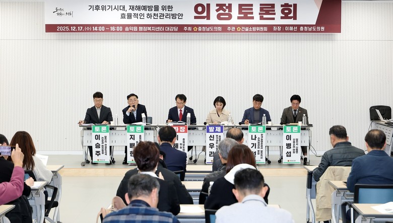 [충남 세계타임즈=이현진 기자] 충남도의회는 17일 당진시 송악읍 행정복지센터 대강당에서 ‘기후위기 시대, 재해예방을 위한 효율적인 하천관리 방안’을 주제로 의정토론회를 개최하고, 기후변화로 심화되는 집중호우와 침수 피해에 대응하기 위한 하천관리 정책 방향을 집중 논의했다.