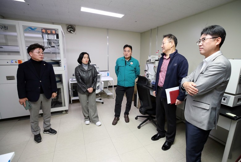 먼저 천안에 위치한 보건환경연구원 북부지원을 방문해 도내 생산·유통되는 식품 안전검사 및 관리 강화 방안을 논의하고, 시설을 둘러보며 근무환경과 애로사항을 청취했다.