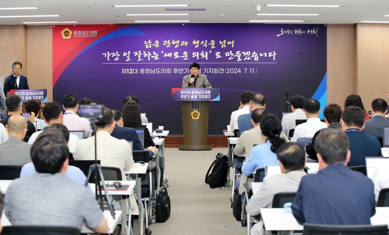 [충남 세계타임즈=백택기 기자] 충남도의회(의장 홍성현)는 11일 도의회 대회의실에서 제12대 후반기 의회 출범 기자회견을 열어 전반기 의정활동 성과를 소개하고, 후반기 의회 운영 방향 및 추진 과제를 설명했다. 새롭게 출범한 후반기 의회는 관행과 형식을 탈피한 민주적인 의회 운영을 통해 모범적인 의회를 구현하겠다고 약속했다.