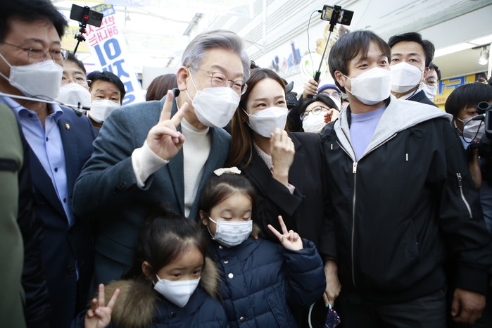 이 후보는 마산어시장에서 "골목이 살아야 나라가 산다"면서 지역경제 활성화를 강조했다. 시장에선 온누리상품권으로 직접 물건을 사고 상인들의 어려움을 청취했다.