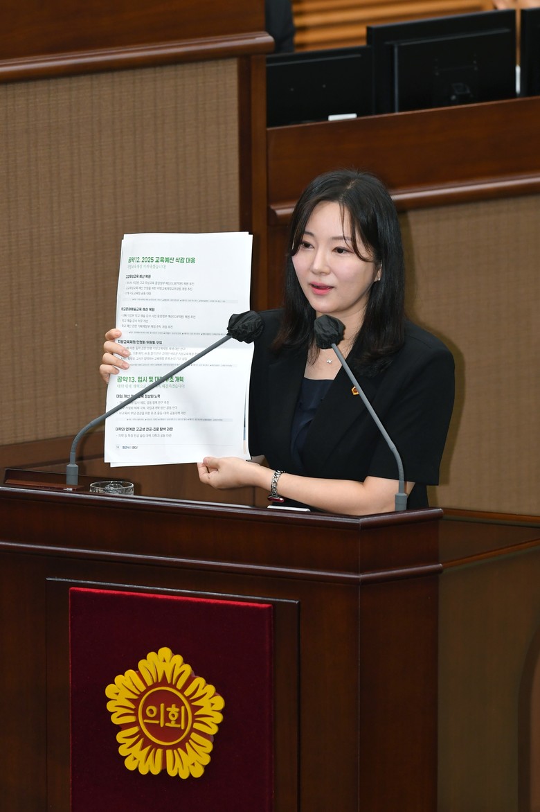 윤 의원은 “교육감께서는 과거 정부에 대해 고교 무상교육 예산을 삭감했다고 주장하며 ‘정부 책임 방기’라 비판했지만, 이는 사실과 달리 단순한 일몰 사안이었다”며 “본인도 교육 행정 경험 부족으로 인한 실수였다고 인정하고 사과한 바 있다”고 지적했다.