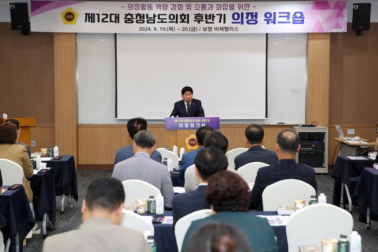 [충남 세계타임즈=백택기 기자] 충남도의회(의장 홍성현)는 19~20일 1박 2일 동안 보령시 일원에서 후반기 의원 간 화합을 다지고, 집행부와 정보교류의 장을 마련하기 위해 ‘제12대 의회 후반기 의정 워크숍’을 진행했다.