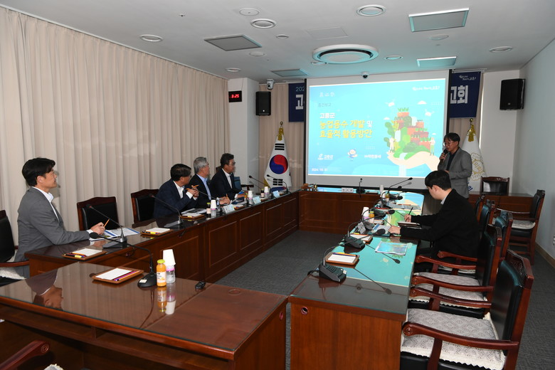 [고흥군 세계타임즈=우덕현 기자] 고흥군의회(의장 류제동) 의원 연구단체 ‘고흥군 농업용수 대책 연구회(대표 박규대 의원)’는 지난 31일 군의회 소회의실에서 고흥군의 농업용수 개발 및 효율적 활용방안에 관한 연구용역 중간보고회를 개최했다.
