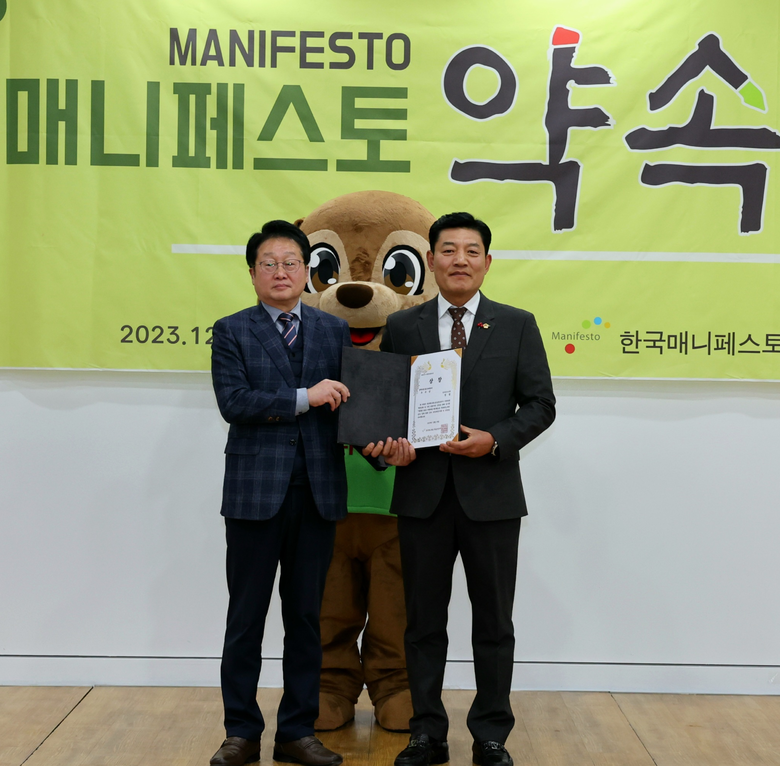 한국매니페스토실천본부가 주최하는 ‘2023 지방의원 매니페스토 약속대상’은 지역발전과 주민들의 복지증진 및 삶의 질 향상을 위해 헌신하고 선거 매니페스토 이행에 충실한 지방의원에게 주는 상으로 ‘공약이행’과 ‘좋은조례’ 2개 분야로 나눠 분야별 전문가 심사를 통해 최종적으로 상을 수여한다.