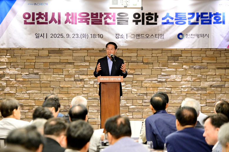 [인천 세계타임즈=심하린 기자] 인천광역시(시장 유정복)는 9월 23일(화) 인천시 체육회장, 군·구 체육회장, 인천시 체육회 종목별 단체회장, 원로 체육인 등 100여 명이 참석해 체육 발전을 위한 소통간담회를 개최했다고 밝혔다.