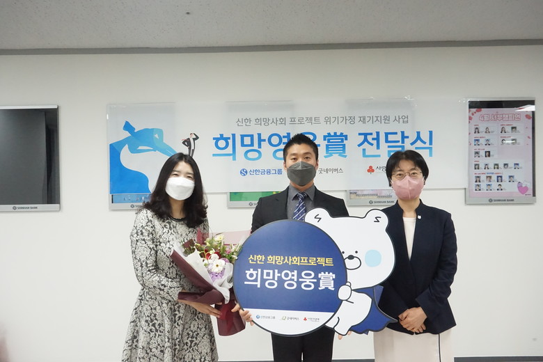‘희망영웅상’은 신한 희망사회 프로젝트 내 위기가정 재기지원사업의 일환으로, 위기에 처한 이웃을 도운 의로운 시민을 포상하여 나눔 문화를 확산하기 위해 진행되는 신한금융그룹의 대표적인 사회공헌 활동이다.