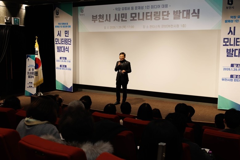 [부천시 세계타임즈=송민수 기자] 김병전 부천시의회 의장은 지난 1월 29일 부천시청 판타스틱 큐브에서 열린 시민 모니터링단 발대식에 참석해 공공장소에서 발생하는 막장 유튜버 등 문제성 1인 미디어 대응을 위한 시민 참여의 중요성을 강조했다.