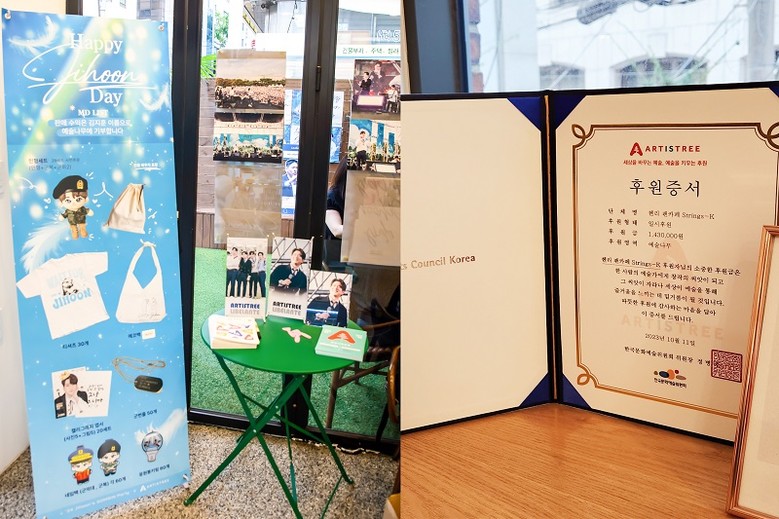 [한국문화예술위원회=세계타임즈 이상호 기자] 지난 7월 크로스오버 그룹 리베란테 멤버 김지훈의 팬모임은 김지훈의 생일을 맞아 서울 모처에서 예술후원을 위한 기부 프로젝트를 기획해, 수익금 전액 1천만원을 기부했다. 팬들의 후원 참여는 지난해 아트 포레스트 페스티벌 출연 후 김지훈이 자립 준비 청년의 음악 활동을 지원하기 위해 ‘예술나무 캠페인’에 3천만원을 기부하면서 비롯되었다. 김지훈의 기부는 이번 기부 프로젝트와 더불어 팬 365명의 릴레이 기부로도 이어지며 군복무로 자리를 비운 아티스트의 뜻에 힘을 보탰다.