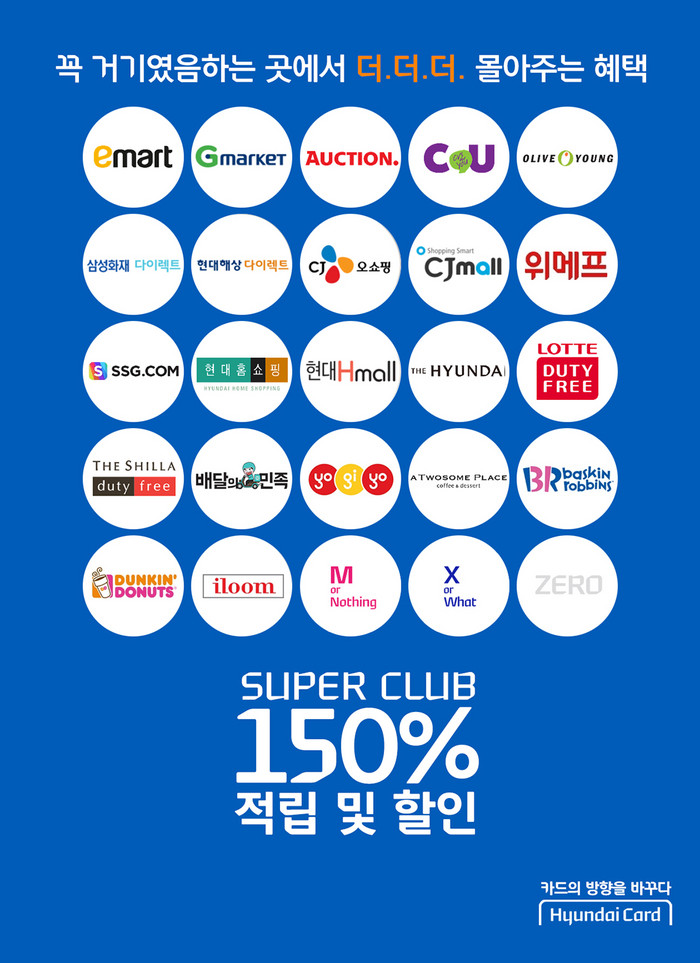 현대카드는 각 업종을 대표하는 대형 브랜드와 고객들이 자주 이용해 혜택 체감도가 높은 브랜드, 빠른 성장세를 보이는 브랜드를 엄선, 8개 필수 생활업종에서 총 22개 브랜드로 '현대카드 슈퍼클럽'을 구성했다.