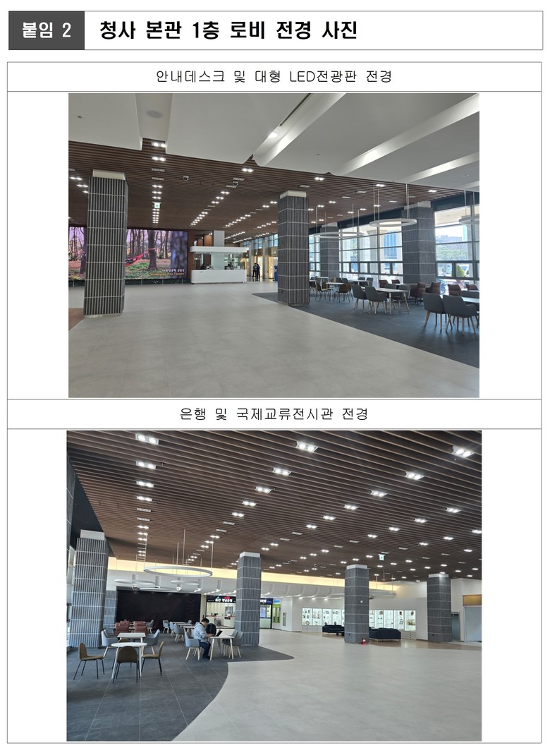 또한, 민원안내창구(데스크)와 청원경찰실을 확장해 시민들이 청사를 방문하는 경우 편안하게 도움을 받을 수 있도록 개선했으며 안내창구(데스크) 옆 벽면에 대형 엘이디(LED)전광판을 설치해 시정홍보와 울산 관광지를 영상으로 볼 수 있다.