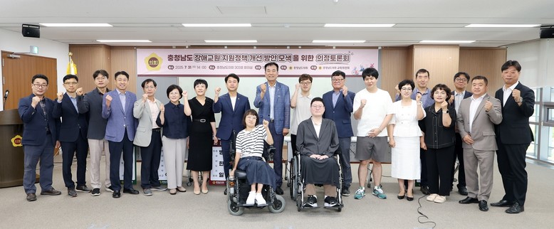 도의회는 31일 충남도의회 회의실에서 「충청남도 장애 교원 지원정책 개선 방안 모색」을 주제로 의정토론회를 개최했다. 이번 토론회는 장애 교원의 채용 확대, 차별 해소, 근무 환경 개선 등 실질적인 정책 개선 방향을 모색하기 위해 마련됐다.
