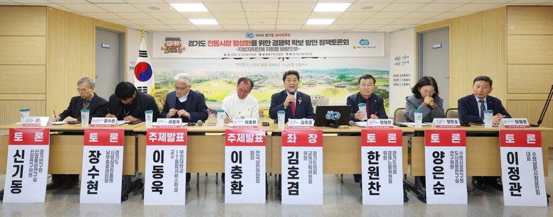 좌장을 맡은 김호겸 경기도의회 교육기획위원회 위원은 “전통시장 활성화는 시설 중심·단기 지원을 넘어 상인이 주도하는 점포 혁신과 상권 개발, 지역 고유 콘텐츠와 디지털·청년 전략을 결합한 중장기 생태계 전환으로 나아가야 한다” 제언하였다.