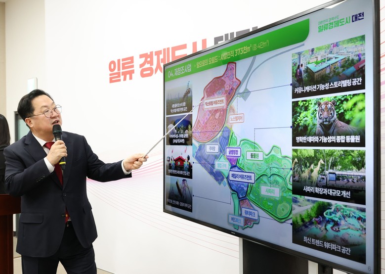이 시장은 “반경 100km이내에 잠재고객 1,800만 명이나 되는 입지적 장점을 고려할 때 2031년까지 순차적으로 오월드 재창조사업이 완료되면 연간 300만 명 이상의 방문객이 오월드를 찾을 것으로 분석됐다”며, “보물산 프로젝트의 일환인 케이블카, 모노레일, 전기자동차 교통망 설치가 완료되면 원도심 일대 상권 부활로 도시재생이 이루어지고, 대전이 체류형 관광도시로 변모하게 될 것”이라고 강조했다.