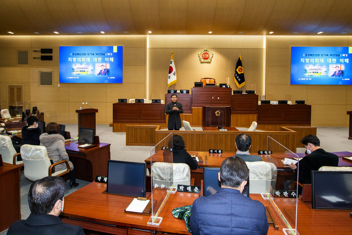 이날 도기욱 부의장은 “지방의회에 대한 이해”라는 주제로 한국 지방자치제도 및 지방의회 전반에 대한 소개, 지방의원 선거과 지방의회 조직, 지방의회의 주요 활동 및 성과에 대한 특강을 비롯하여,