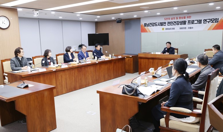 [충남 세계타임즈=이현진 기자] 충남도의회 ‘충남 건강도시 발전과 전인건강 생활실천 연구모임’(대표 이철수)은 11일 보건복지환경위원회 회의실에서 ‘도민의 삶의 질 향상을 위한 충남건강도시발전-전인건강 생활프로그램 연구용역’ 최종보고회를 개최했다.