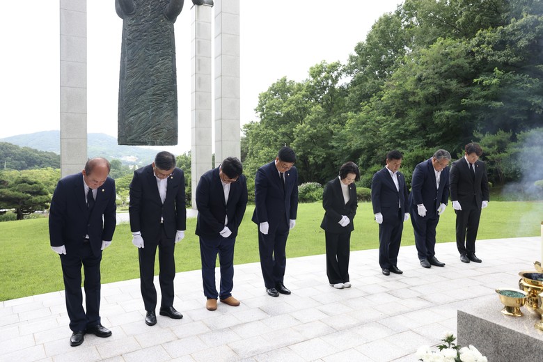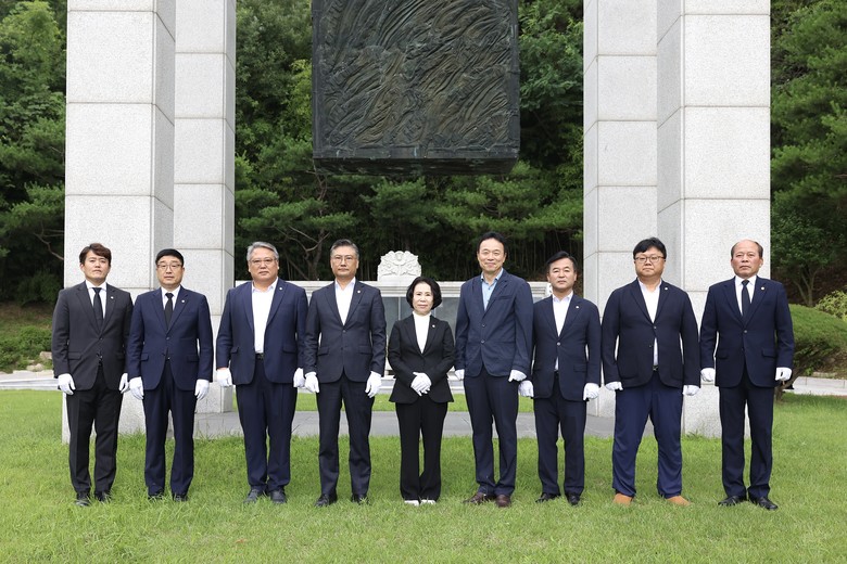 천안시의회 후반기 의장단은 5일 천안보훈공원을 방문하여 ‘천안인의 상’을 참배하고 후반기 의정활동에 대한 각오를 다졌다.
