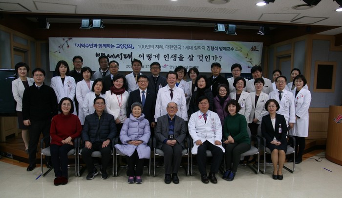 이영구 병원장은 “김형석 교수님은 여전히 쉼 없이 배우고 공부하는 삶을 통해 참다운 원로지식인의 모습을 보여주고 있다”며 “오늘 강연을 통해 인생의 대선배이자 큰 스승인 김형석 교수님의 인생 경험과 지혜를 배울 수 있는 귀중한 시간이 되었다”고 감사의 말을 전했다.