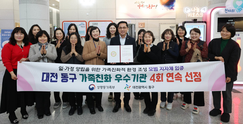 [동구 세계타임즈=이채봉 기자] 대전 동구(구청장 박희조)는 성평등가족부가 주관하는 ‘가족친화우수기관’ 재인증을 통과함에 따라, 청사 내 현판 교체식을 진행했다고 24일 밝혔다.