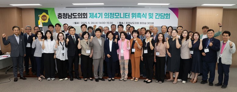 충남도의회(의장 홍성현)는 28일 의회 회의실에서 ‘충청남도의회 제4기 의정모니터’ 위촉식 및 간담회를 개최했다.