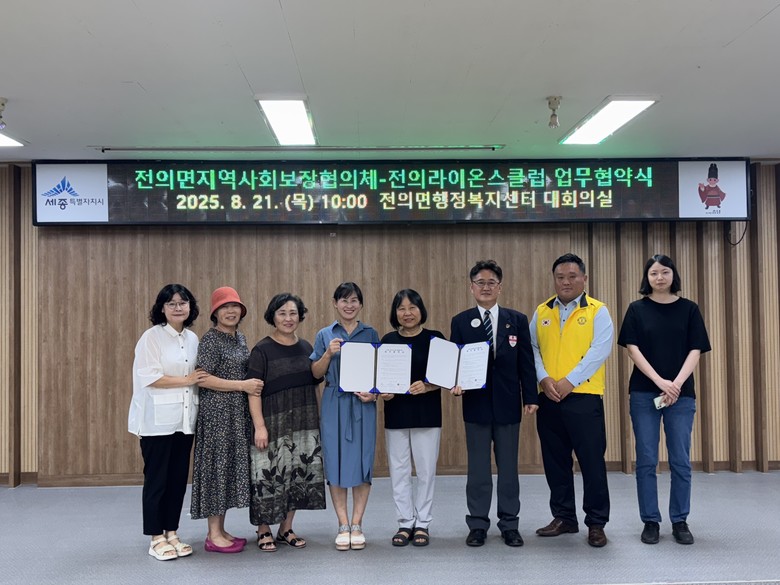 송재숙 전의면장은 “이번 협약으로 복지취약계층 발굴과 지원이 더욱 원활하게 이루어질 수 있을 것으로 기대된다”며 “앞으로 전의라이온스클럽과 함께 지역 주민들의 복지 증진을 위해 더욱 노력하겠다”고 말했다.