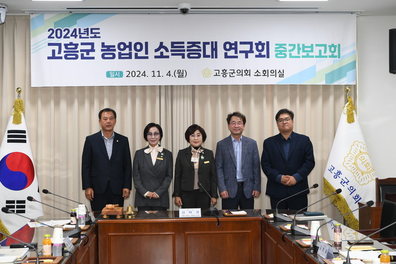 이날 중간보고회는 고흥군 농업인 소득증대 연구회 김미경 대표의원을 비롯한 한승욱, 박경석, 전명숙의원 등 연구단체 소속 의원들과 연구용역 수행을 맡은 지역농업네트워크 전남 협동조합 연구진 및 고흥군의회 관계 공무원 등이 참석했다.