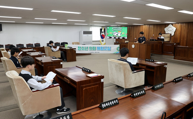 이날 프로그램은 영상 시청, 의회 견학, 모의의회 등이 포함되어 학생들이 지방의회의 역할과 기능을 이해하고 민주적 의사결정 과정을 직접 체험할 수 있도록 구성되어 있다.