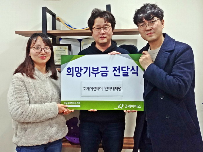 김영배 굿네이버스 경기2본부장은 “연말연시를 맞이하여 지역사회에 많은 도움의 손길들이 있어 감사하고, 아동을 생각하는 지역 기업들의 마음으로 풍성한 2020년이 될 것같다”고 말하며 감사함을 전했다. 또한, 임윤경 J&J인터내셔널 대표는 “수익금의 일부를 기부함으로써, 국내 뿐 아니라 해외의 아동들이 큰 도움을 받는다는 생각에 뿌듯하고, 앞으로도 아이들이 행복한 세상을 위해 지속적으로 나눔에 참여 하겠다”고 말하였다.