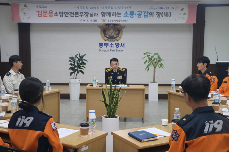김 본부장은 이날 동부소방서 행정 업무부서와 현장출동 부서를 찾아 직원들을 격려했으며, 기관장과 부서장이 솔선해 세대·계급 간 격의없는 공감의 장을 형성하고 서로 존중·배려하는 직장문화 조성을 강조했다.