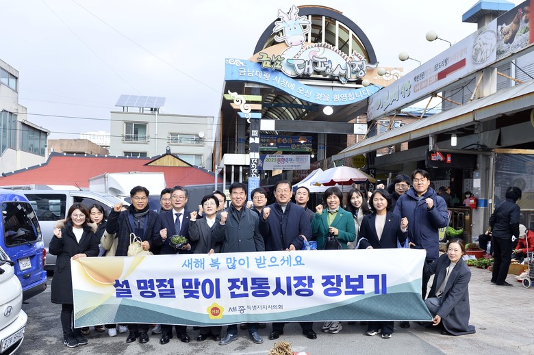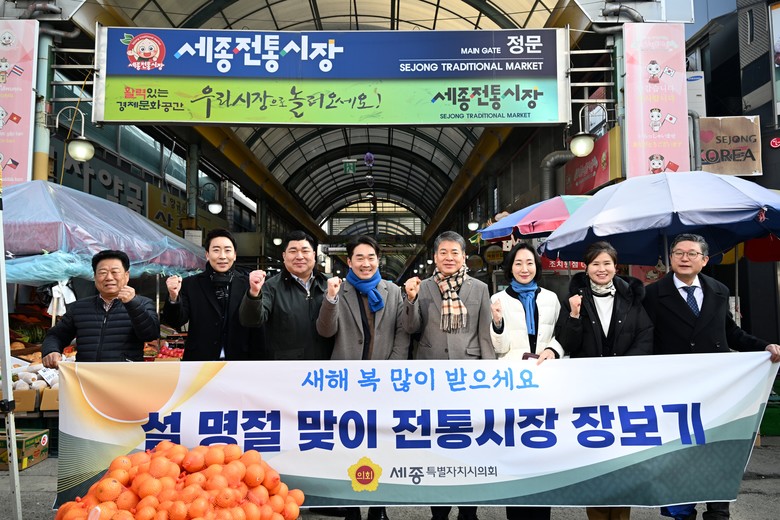 이날 세종시의회 의원과 사무처 직원들은 시장 곳곳을 둘러보며 설 명절에 필요한 차례 용품을 구매하는 등 서민들이 피부로 느낄 현장의 물가를 체감해 보는 시간을 가졌다. 아울러 전통시장의 운영 현황과 애로사항도 경청했다.