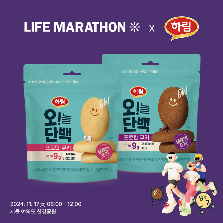 하림 마케팅팀 담당자는 “오늘단백 프로틴 쿠키로 양질의 단백질을 제공하여 참가자들이 완주하는데 도움이 되길 바란다”며 “단백질과 식이섬유를 동시에 챙길 수 있는 맛있는 글루텐 프리 ‘오!늘단백 프로틴 쿠키’로 많은 사람들이 건강한 하루를 만들 수 있길 기대한다”고 말했다.