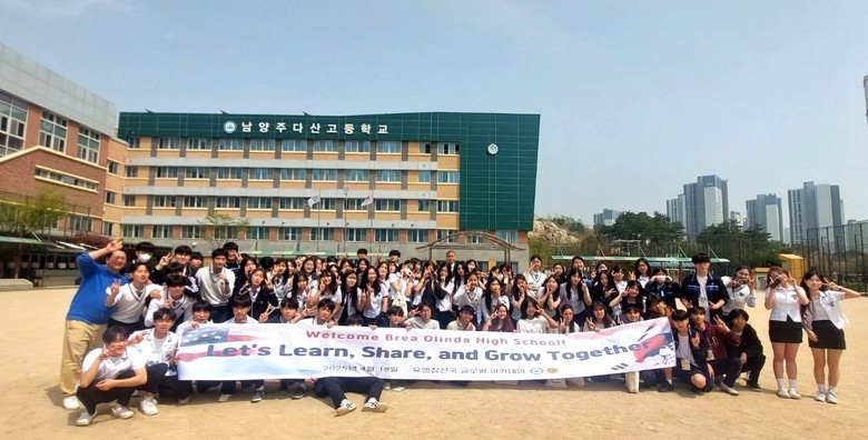 [남양주시 세계타임즈=송민수 기자] 남양주다산고등학교(교장 박성일)는 2025년 4월 18일, 미국 캘리포니아주 브레아 올린다 하이스쿨(Brea Olinda High School)의 학생 및 교사들을 초청하여 국제교류 행사를 개최했다. 이번 방문은 남양주시와 우호도시인 미국 브레아시 간의 청소년 교류활동의 일환으로, 지난해에 이어 양교 간의 지속적인 우정과 협력을 다지는 자리로 마련되었다.