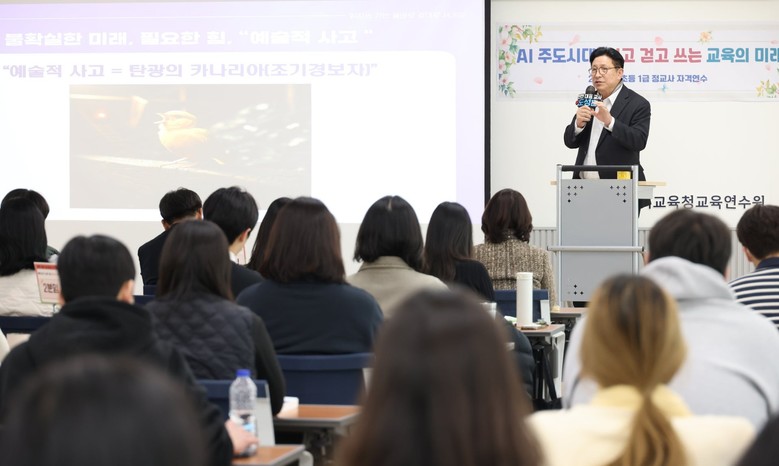 [인천 세계타임즈=심하린 기자] 도성훈 인천광역시교육감은 20일 인천교육연수원에서 ‘초등 1급 정교사 자격연수’ 대상자 87명에게 ‘AI주도시대, 읽고, 걷고, 쓰는 교육의 미래’라는 주제로 강연을 진행했다.