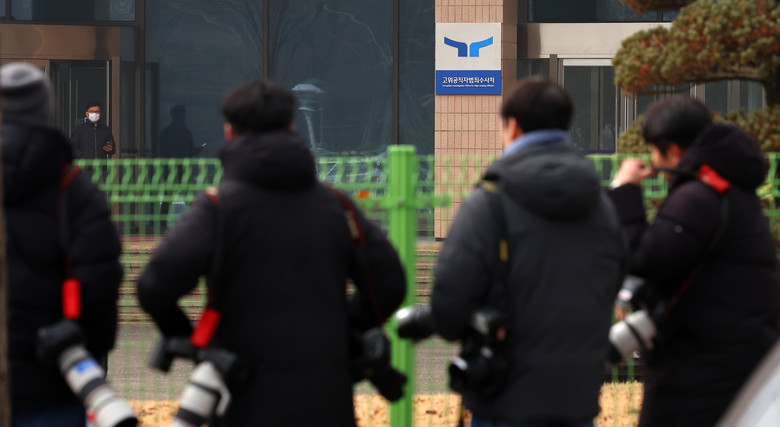 [세계타임즈 = 이채봉 기자] 20일 오전 정부과천청사 내 고위공직자범죄수사처 앞에 취재진이 대기하고 있다.