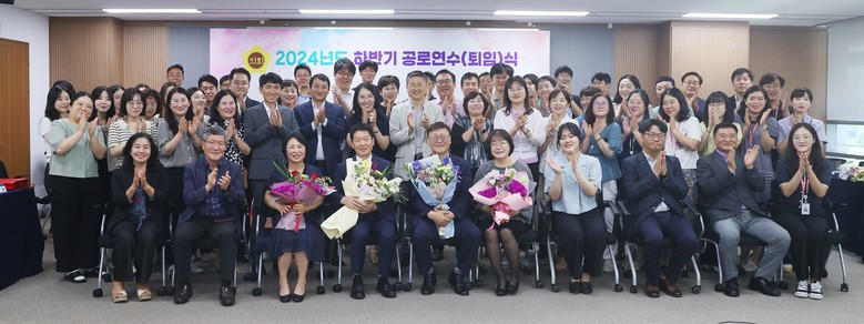 연수식은 연수자 공로패 수여를 시작으로 환송사, 퇴임 소회 발표, 동영상 시청, 직원과의 대화 등의 순서로 진행됐으며 공로연수자와 가족, 공무원 등 100여 명이 참석했다.