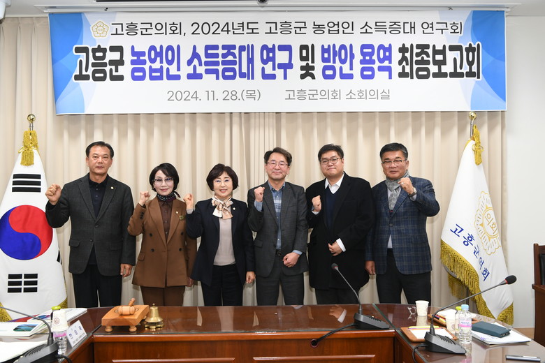 이날 최종보고회는 고흥군 농업인 소득증대 연구회 김미경 대표의원을 비롯한 연구단체 소속 의원과 연구용역 수행을 맡은 지역농업네트워크 전남 협동조합 연구진 및 고흥군의회 관계 공무원 등이 참석했다.