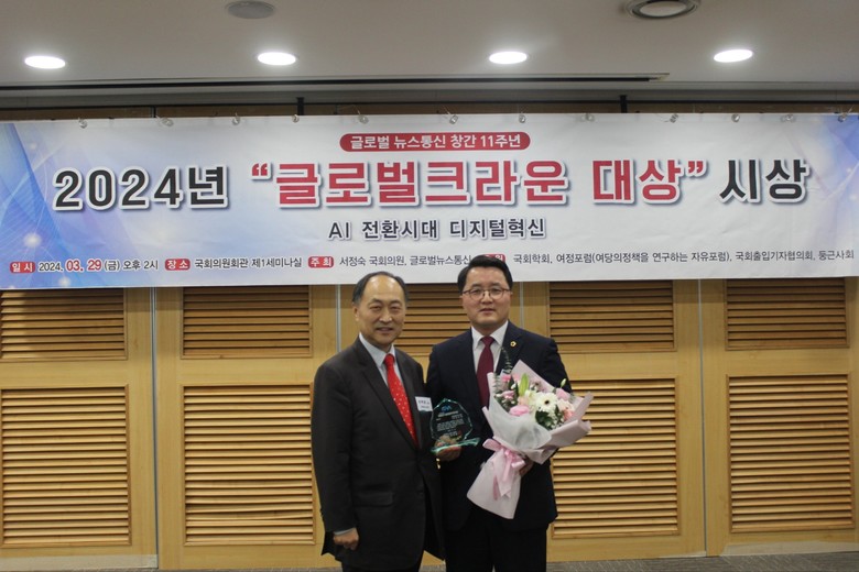 지난 29일 국회 제1세미나실에서 개최된 ‘2024 대한민국 글로벌 크라운 대상 시상식’에서 ‘지방자치부문’ 대상을 수상했다.