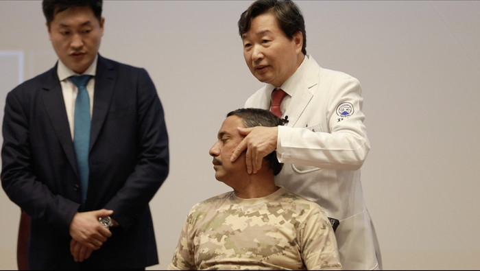 | ▲자생의료재단 신준식 명예이사장이 카타르 군의료 전문의 센터에서 척추측만증 환자를 치료하고 있다. |