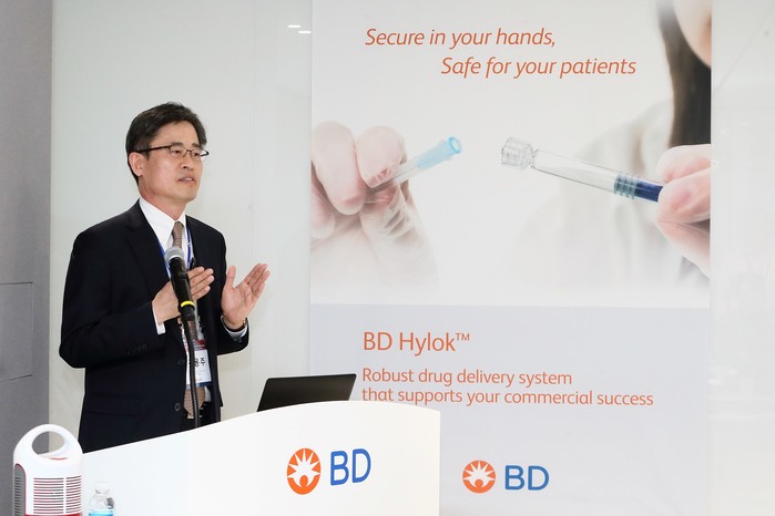 | ▲김용주 BD 코리아 사장이 프리필드 시린지 분야에서의 BD 리더십을 설명하고 있다. |
