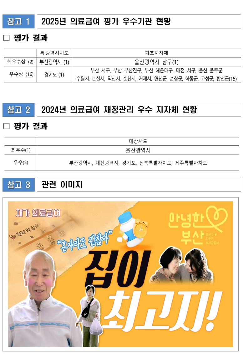[의료급여사업 평가] 보건복지부가 매년 의료급여 사례관리, 재가의료급여, 부당이득금 징수율 등 의료급여사업 전반에 대한 실적과 지자체의 노력도를 평가해 전국 18개 지방자치단체(최우수 2, 우수 16)를 선정한다.