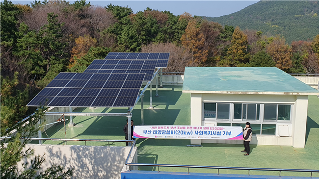 ‘태양광 에너지나눔 이에스지(ESG) 사업’은 부산 지역 에너지 분야 기관·기업 간 협력을 기반으로 2022년 시작해 올해로 4년째를 맞았으며, 매년 1곳의 취약계층 시설에 20킬로와트(kW) 규모 발전시설 설치를 지원해 왔다.