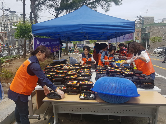 유희자 단장은 “오늘 어버이날에 부모님을 모시는 심정으로 천명의 어르신들게 봉사를 하게 되어서 행복과 보람을 느낀다.“고 말했다.