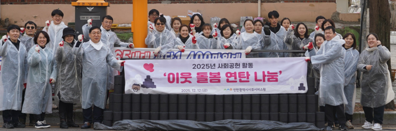 [인천 세계타임즈=심하린 기자] 인천시사회서비스원(원장·조대흥)은 연말을 맞아 최근 전 직원이 함께 연탄배달 봉사에 나서 지역사회에 훈훈한 정을 전달했다고 16일 밝혔다.