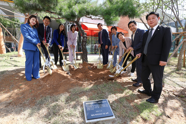 | ▲ 정재천 의장과 이지희 부의장, 행정재무위원회 위원들이 기념식수를 하는 모습 |